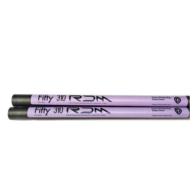 Le mât d windsurf Goya RDM Fifty C50 bénéficie d'une construction prepeg avec 50% de carbone. Il est robuste et polyvalent pour tous types d'utilisation loisir: débutant, vague et freeride.Tailles:Longueur: 340 cm, IMCS: 14, 1,47kg Longueur: 370 cm, IMCS: 16, 1,65kg Longueur: 400 cm, IMCS: 18, 1,85kg Longueur: 430 cm, IMCS: 21, 2,1kg Caractéristiques:50% de carbone Prépeg Diamètre: RDM Courbure polyvalente "constant curve"